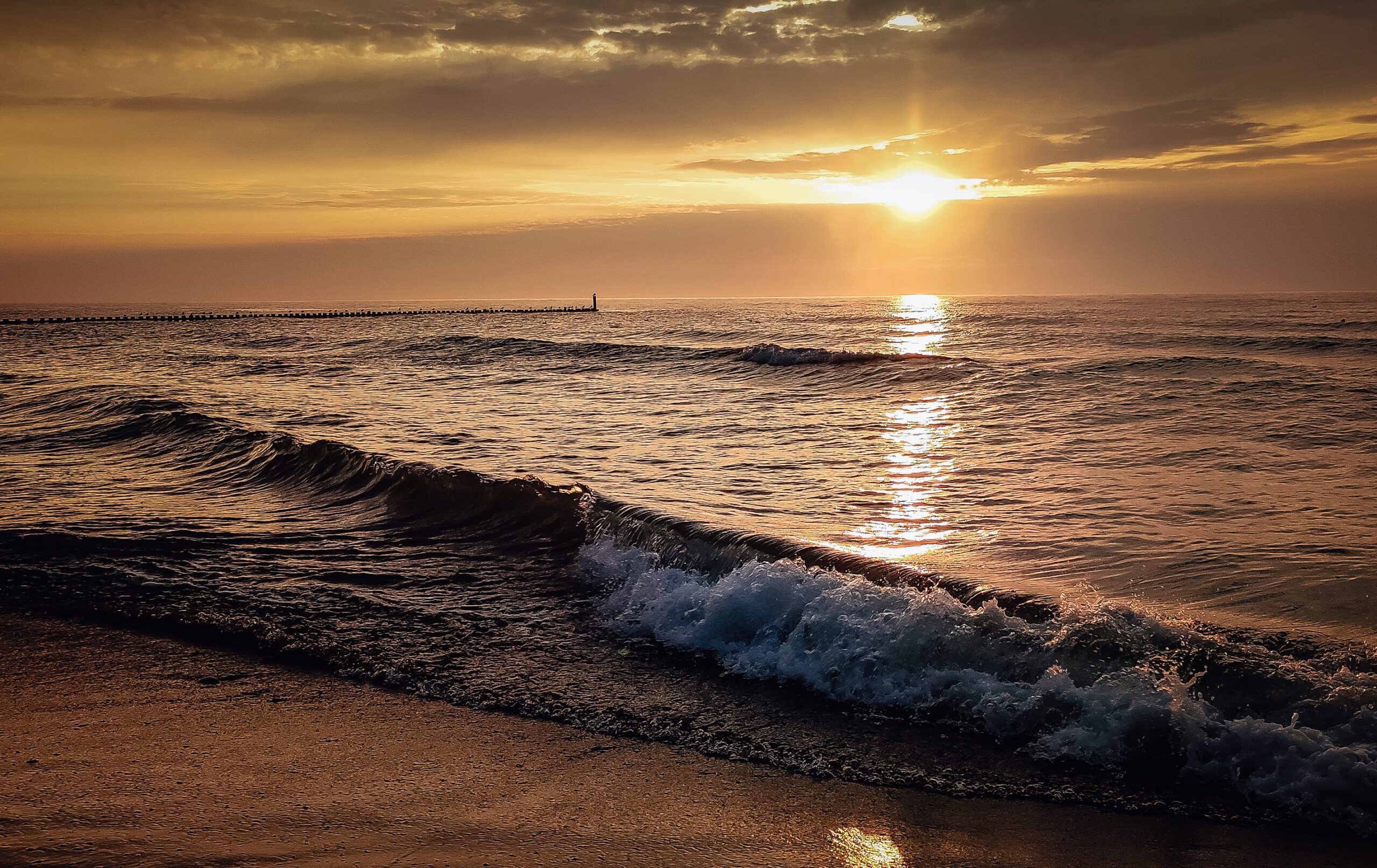 Nadmorskie wakacje dobiegły końca. Piątek był dniem pożegnalnym. Plażowaliśmy do momentu, w którym chmury całkowicie zasłoniły słońce i zaczęło padać. Wieczorem wyszliśmy na spacer po Wiciu i zaliczyliśmy wizytę w salonie gier oraz w kawiarni na obowiązkowego gofra. Jeszcze ostatni spacer brzegiem morza przy zachodzie słońca i można wracać do domu. Nasz pobyt w całości i tak można zaliczyć do udanych, jeśli chodzi o pogodę, ponieważ na wszystko znaleźliśmy czas: plażowanie, zwiedzanie, relaks, spacery…